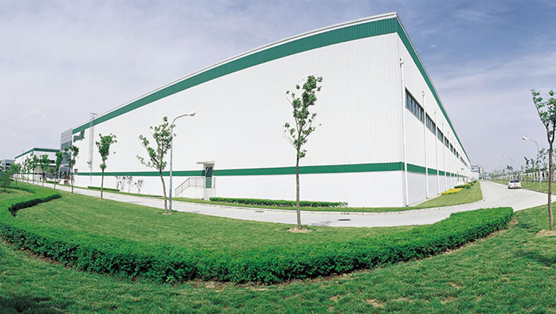上海普洛斯物流位于松江工業區,松江是上海的西入口,擁有非常便利的交通條件,2010年建設。屋面為鍍鋁鋅光板,牌號為S350GD+AZ,鋁鋅重量為165克/平方米。墻面采用寶鋼高耐侯鍍鋁鋅彩涂鋼板,顏色主體為白灰,色帶為闊葉綠,鋁鋅層重量150克/平方米,牌號TS300GD+AZ。
