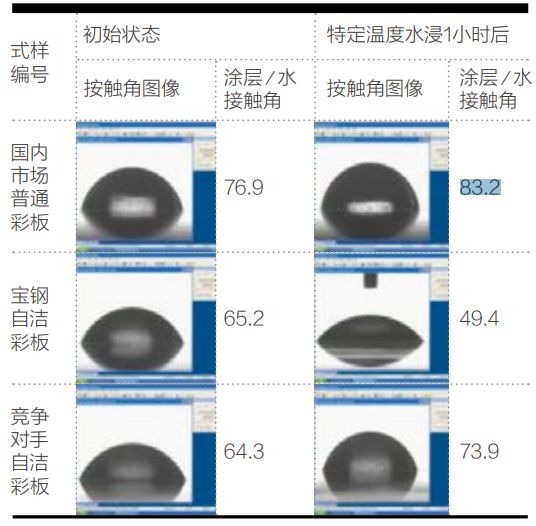 寶鋼自潔系列彩涂鋼板通過提高涂層交聯(lián)密度并形成親水性涂層,以達到自清潔的作用。