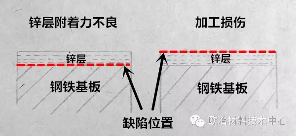 鋅層附著力不良的本質是鍍鋅層和鋼鐵基板的結合力不佳,反映出來的就是加工變形后鋅層與基板剝離。