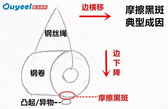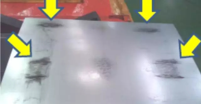 摩擦黑斑:是一種“產生原因+典型形貌”的命名方式,本質上是薄板產品層與層之間發生位移造成的磨損。