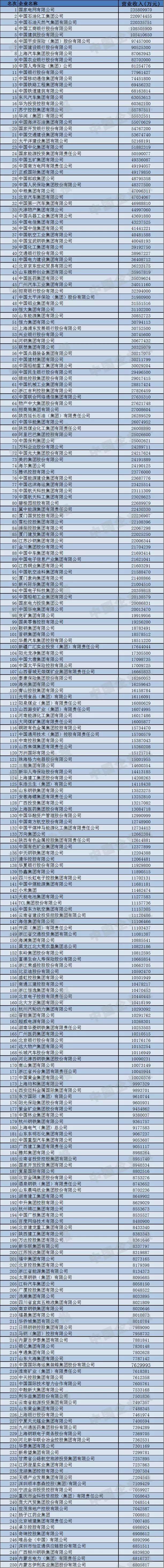 (附2018年中國(guó)企業(yè)500強(qiáng)完整名單。)